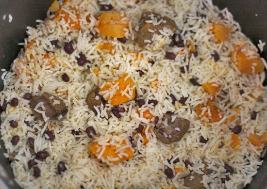 Boranıdan plov da bişirilir. Bu cür plovu bişirmək üçün əvvəlcə düyü süzülür. Qazana lazımi qədər yağ salındıqdan sonra əvvəlcədən bişirilmiş ət tikələri oraya düzülür. Növbə ilə düyü, soğan, kartof, ərik, alça qurusu düzülür. Üzərinə zəfəranlı yağ əlavə olunur. Dəmə qoyulur.
