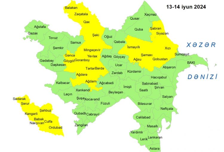 İyunun 13-14-də əsasən dağlıq və dağətəyi rayonlarda gözlənilən küləkli hava şəraiti ilə bağlı Milli Hidrometeorologiya Xidməti “sarı” xəbərdarlıq edib.
