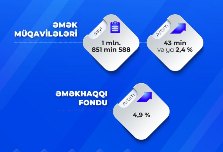 Bu ilin yanvar-iyun ayları ərzində ölkəmizdə əmək müqavilələrinin sayı 43 min və ya 2,4 faiz artaraq 1 milyon 851 min 588-ə çatıb.