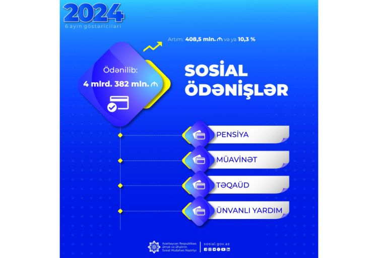 Sosial ödənişlərə yönəldilən vəsaitlərdə artım dinamikası 2024-cü ilin 6 ayında da davam edib.