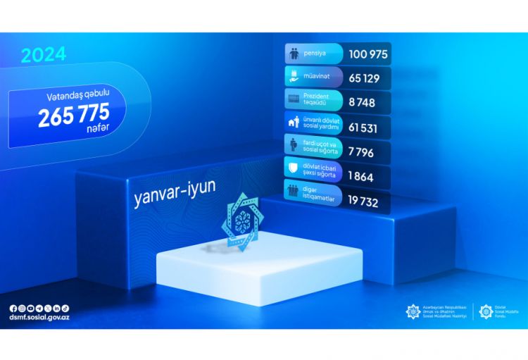 Bu ilin yanvar-iyun ayları ərzində Dövlət Sosial Müdafiə Fondunun fəaliyyət istiqamətləri üzrə ümumilikdə 265 min 775 vətəndaş qəbul edilib.