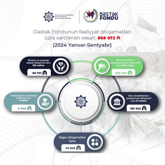 Məişət şəraitinin yaxşılaşdırılması istiqaməti üzrə - 230 nəfərə 559 min 730 manat;