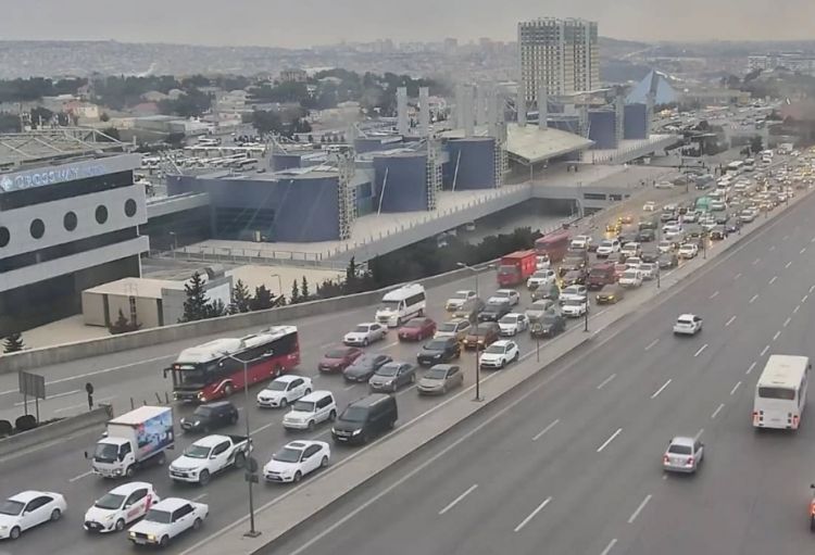 Bakının bir sıra yollarında nəqliyyatın hərəkətində sıxlıq yaranıb.