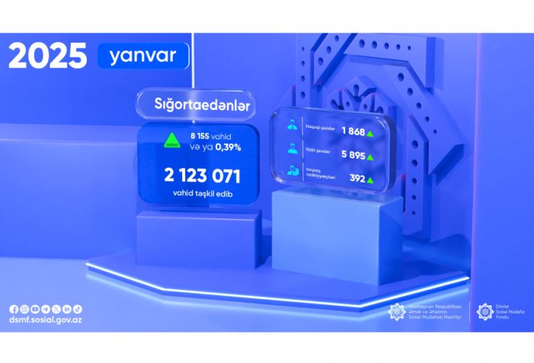 Bu ilin yanvar ayında fərdi uçot sistemində qeydə alınan sığortaedənlərin sayı 8155 vahid və ya 0,39 faiz artaraq 2 milyon 123 min 71 vahid təşkil edib.