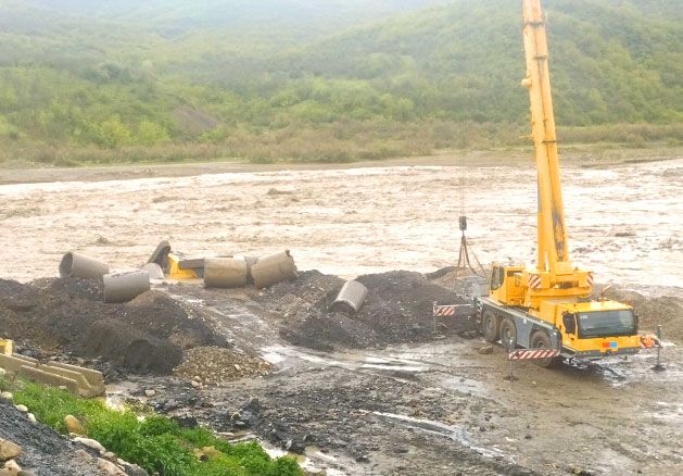 NUHÇIXAN-ın məlumatına görə, ərazidə yol-təmir işləri ilə məşğul olan işçilər yağışın başlamasını müşahidə edərək təhlükəsizlik məqsədilə ekskavatorun içərisinə yerləşiblər. Lakin bir qədər sonra çaya sel gəlib və güclü axının təsirindən ekskavator aşıb.