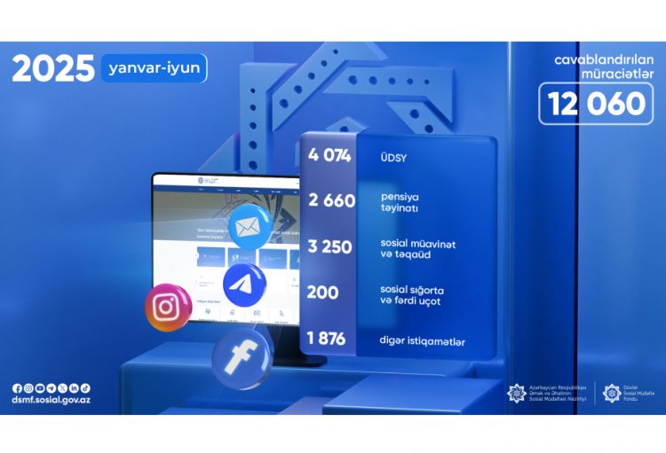 Bu ilin yanvar-iyun ayları ərzində Dövlət Sosial Müdafiə Fondunun (DSMF) fəaliyyət istiqamətləri üzrə sosial şəbəkələr vasitəsilə 12 min 60 vətəndaş müraciəti cavablandırılıb.