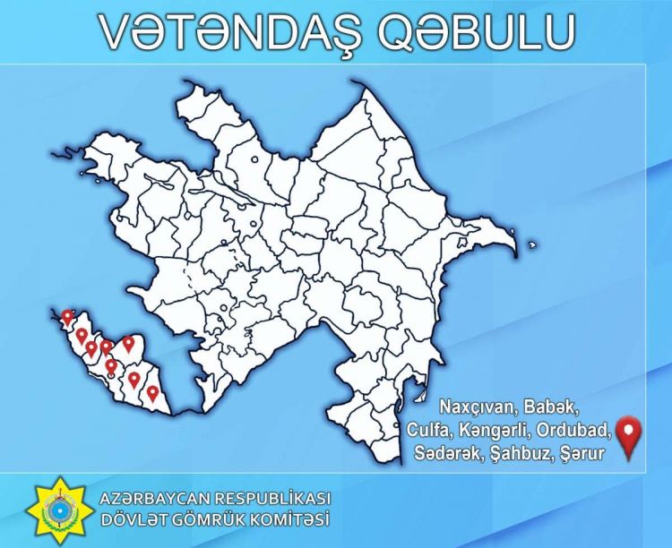 Qəbul zamanı Naxçıvan şəhəri, Babək, Culfa, Kəngərli, Ordubad, Sədərək, Şahbuz və Şərur rayonlarının sakinlərinin gömrük məsələləri ilə bağlı müraciətləri dinləniləcək.
