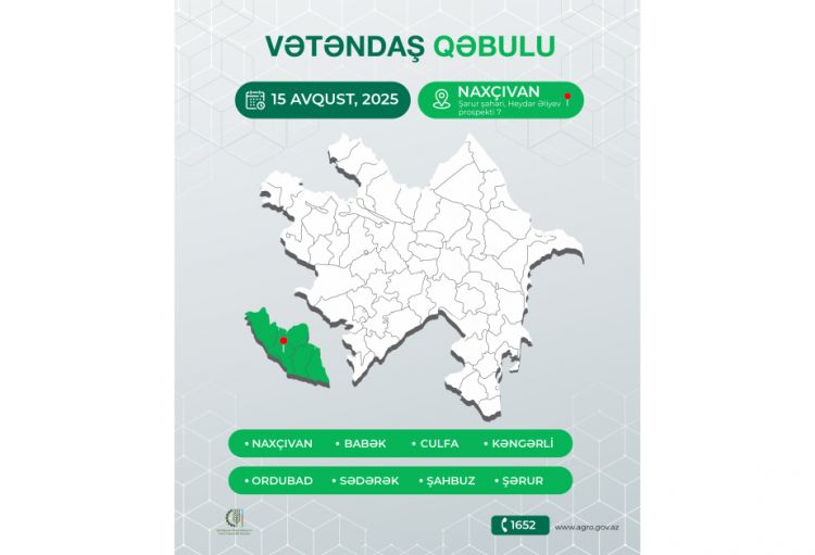 Kənd təsərrüfatı naziri Məcnun Məmmədov avqustun 15-də saat 09:00-da Şərurda Naxçıvan şəhəri, Babək, Culfa, Kəngərli, Ordubad, Sədərək, Şahbuz və rayonlarından olan vətəndaşlarla görüşəcək.