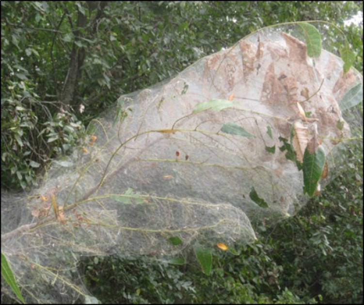 Bildirilib ki, iqlimə uyğun olaraq il ərzində bir neçə nəsil verə bilir. Zərərvericinin sürfələri yarpaq ayasının əsas toxuması ilə qidalanaraq bitkinin yaşıl kütləsinə ziyan vurur. Meyvə bitkilərinə vurduğu ziyan isə məhsul itkisi ilə nəticələnir. Üçüncü yaş mərhələsində olan sürfələr bir neçə yarpağı bir-birinə bağlayaraq tor yuvalar qurub, sürü halında yayılır və budaqdan budağa keçir. Beşinci yaş mərhələsindən etibarən sərbəst həyat tərzinə qayıdırlar. Azərbaycan şəraitində əsasən tut ağacına ziyan vurur.