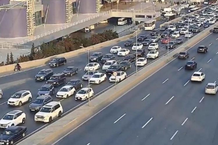 Bakının bir sıra yollarında nəqliyyatın sıxlığı müşahidə olunur.