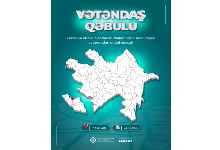 Əmək və əhalinin sosial müdafiəsi naziri Anar Əliyev oktyabrın 31-də Naxçıvan şəhərində Naxçıvan Muxtar Respublikasının sakinlərinin müraciətlərini dinləyəcək.