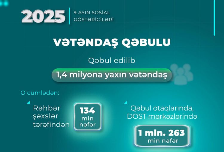 Əmək və Əhalinin Sosial Müdafiəsi Nazirliyi (ƏƏSMN) və qurumları tərəfindən bu ilin 9 ayında 1,4 milyona yaxın vətəndaşın qəbulu həyata keçirilib.