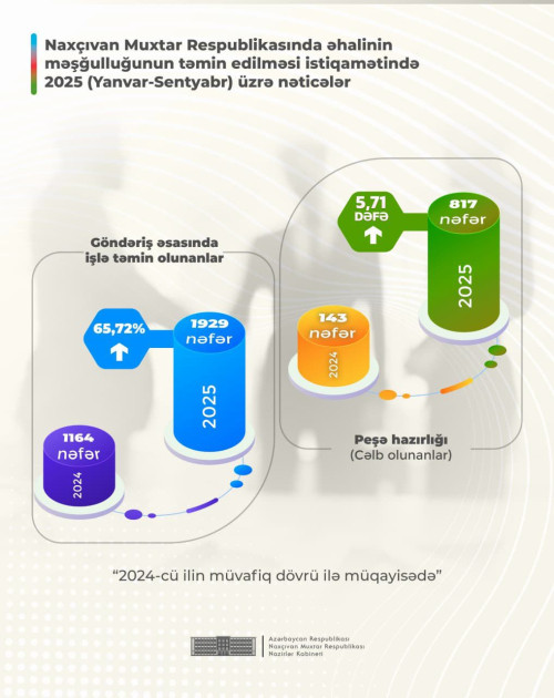 Muxtar Respublika Nazirlər Kabinetinin mətbuat xidmətindən NUHÇIXAN-a verilən məlumata görə, 2025-ci ilin yanvar–sentyabr ayları ərzində bu istiqamətdə ardıcıl tədbirlər həyata keçirilib və mühüm nəticələr əldə olunub.