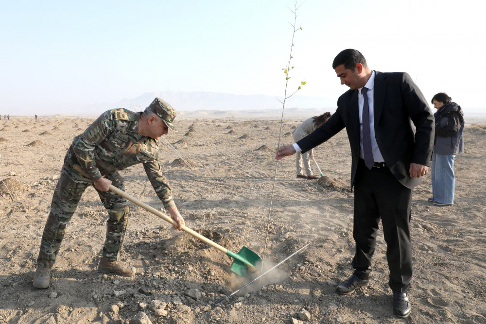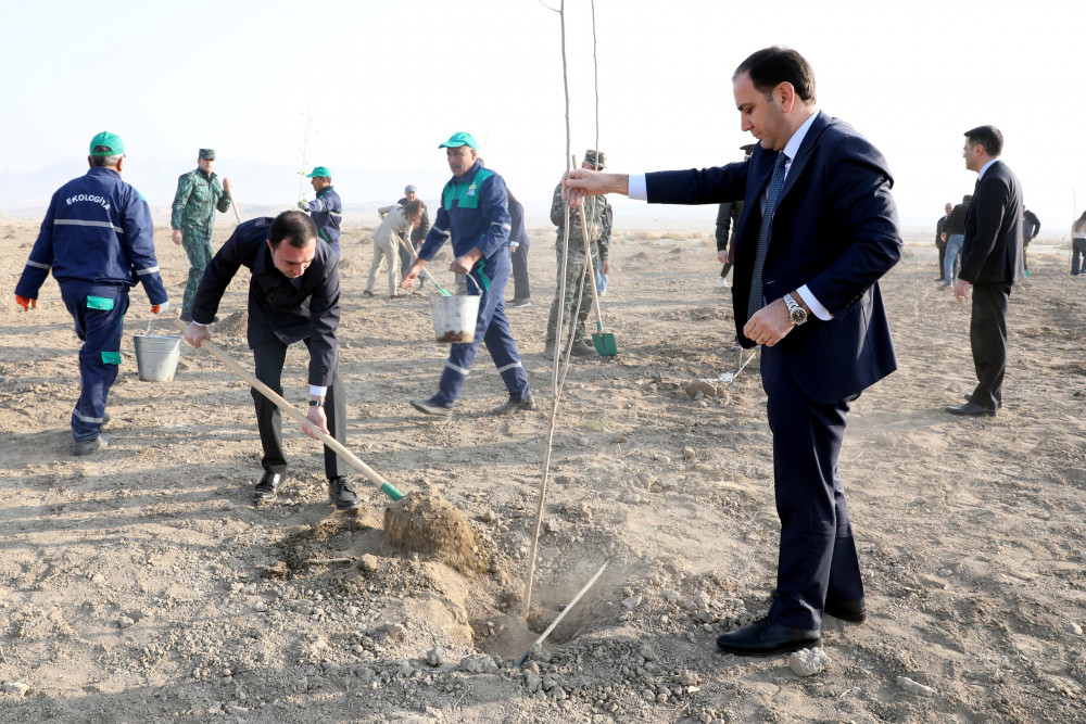 Əvvəlcə Naxçıvan-Çalxanqala avtomobil yolunun kənarında ağacəkmə aksiyası keçirilib.