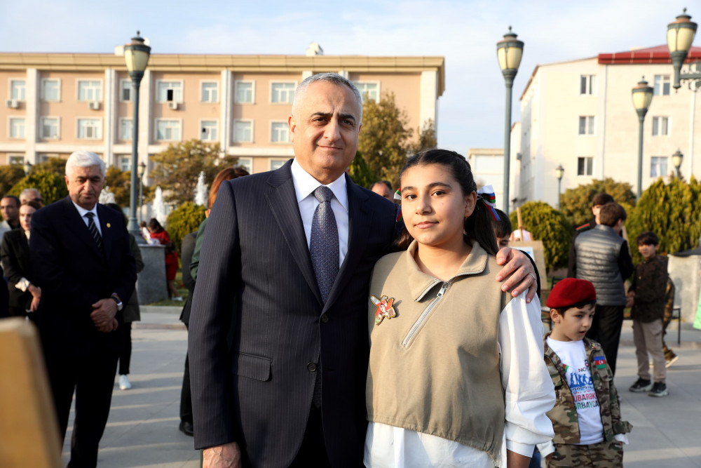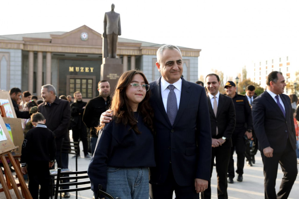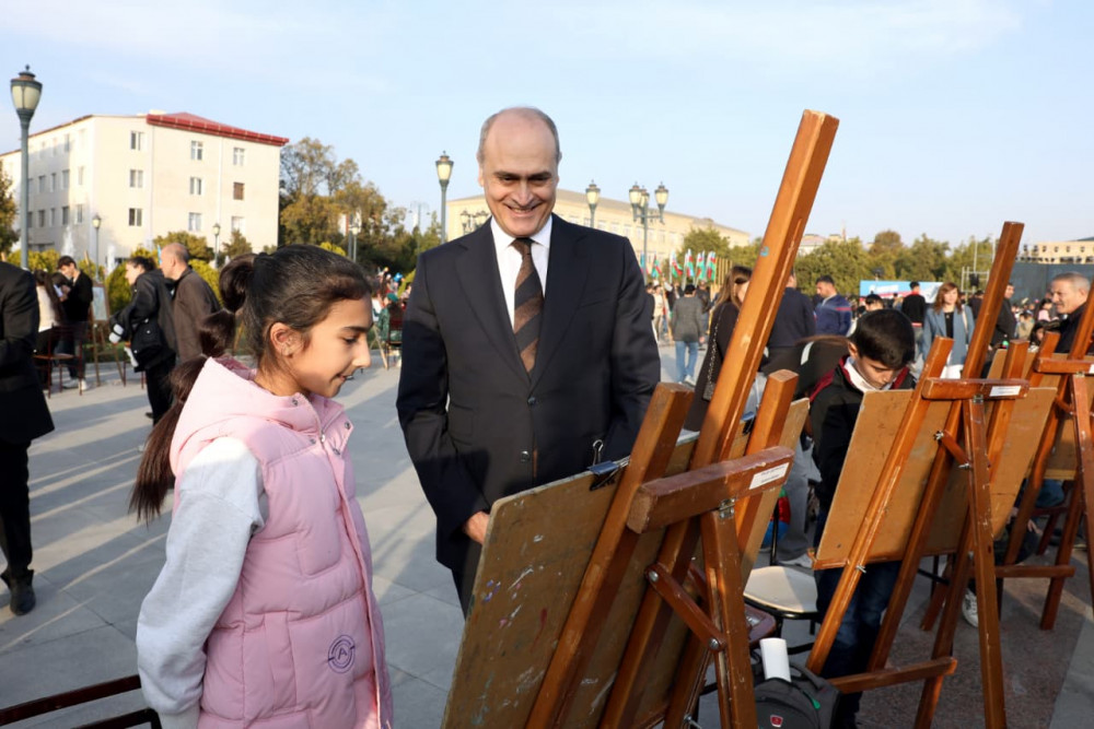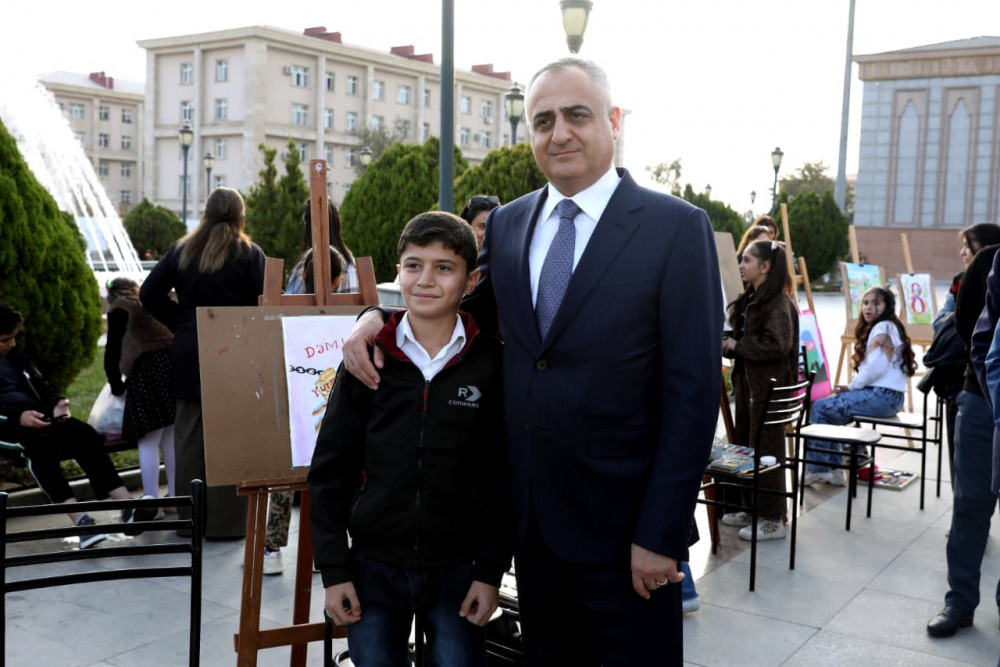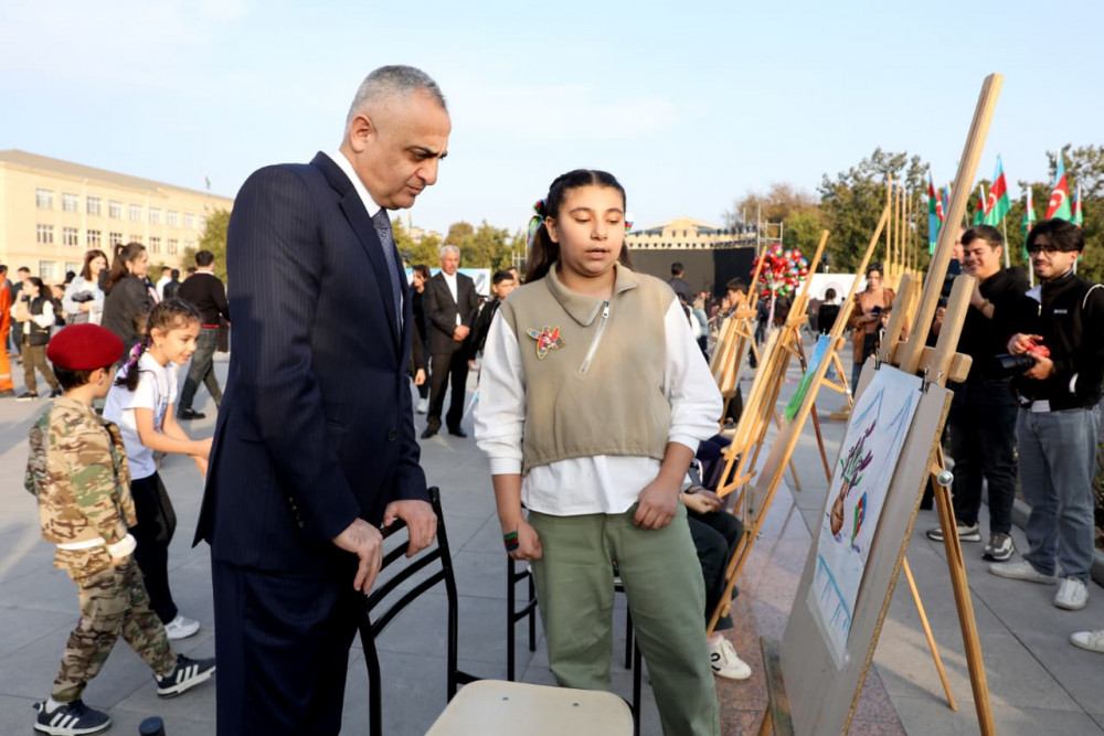 Səlahiyyətli nümayəndə hərbi paradı izləyib, istedadlı uşaqların rəsm sərgisi ilə tanış olub - FOTOLAR