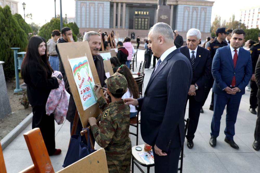 Sonra səlahiyyətli nümayəndə istedadlı şagirdlərin Zəfər Gününə həsr olunmuş rəsm sərgisi ilə tanış olub. Naxçıvan şəhərindəki ümumtəhsil, incəsənət məktəblərinin, eləcə də Heydər Əliyev Uşaq-Gənclər Yaradıcılıq Məktəbi və Ərtoğrol Cavid adına Uşaq İncəsənət Məktəbinin istedadlı şagirdləri şanlı qələbəmizi, Müzəffər ordumuzu və sülh motivlərini əks etdirən, müxtəlif üsulda işlənmiş 50-ə yaxın rəsm əsəri təqdim ediblər.