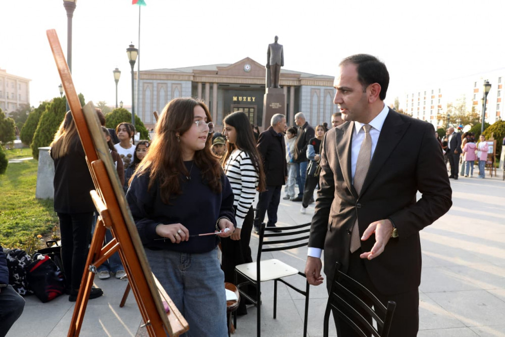 Həmin gün Heydər Əliyev Muzeyinin önündə Naxçıvan şəhər 2 nömrəli incəsənət məktəbinin şagirdləri işğaldan azad olunmuş rayonlarımıza həsr olunmuş maraqlı kompozisiya nümayiş etdiriblər.