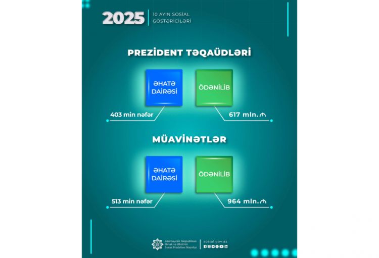Nazirliyin İctimaiyyətlə əlaqələr şöbəsindən NUHÇIXAN-a verilən məlumata görə, həmin dövrdə əhaliyə sosial müavinətlər üzrə 964 milyon manat, Prezident təqaüdləri üzrə 617 milyon manat ödənilib.