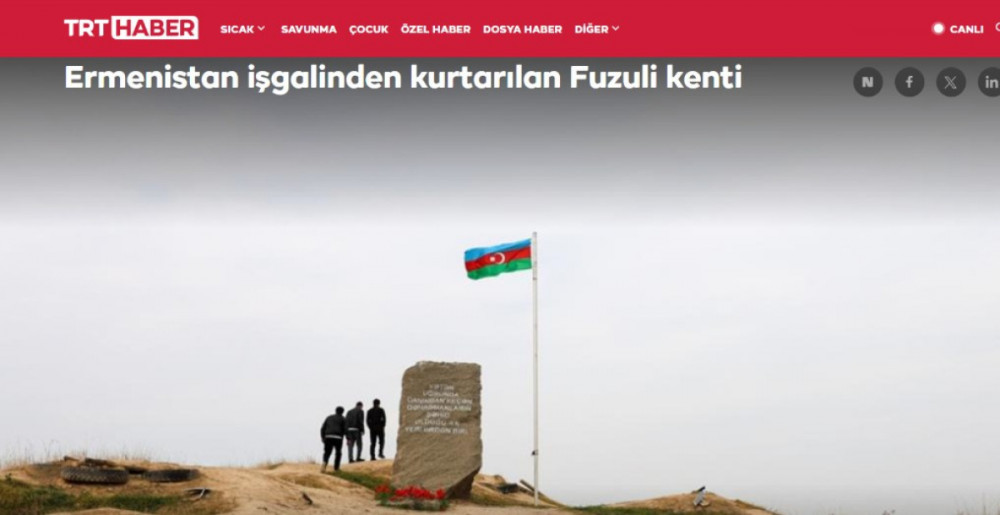 Türkiyənin “TRT Haber” televiziya kanalı milyonlarla izləyicisini Azərbaycanın erməni işğalından azad edilmiş Füzuli rayonu ilə tanış edib.