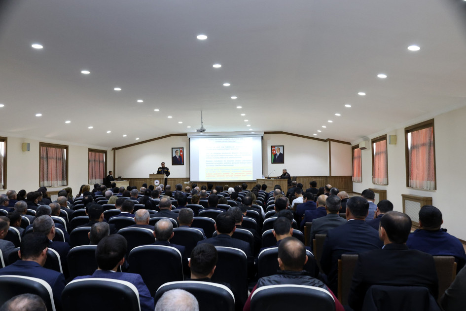 Sonra Mülki müdafiə və əməliyyat planlaşdırma işinin təşkili idarəsinin rəisi mayor Şərif Əsədov çıxış edərək 2025-ci ildə mülki müdafiə sahəsində görülən işlər, bu sahədə əldə olunan nəticələr, qeydə alınan nöqsanlar, 2026-cı ildə qarşıya qoyulan əsas məqsədlər və tələblər barədə danışıb. Fövqəladə hallara operativ reaksiya verilməsi məqsədilə xəbərdarlığın təşkili, eləcədə əhalinin mühafizəsinin təşkili mexanizmi barədə aidiyyəti vəzifəli şəxslərə ətraflı məlumat verib.
