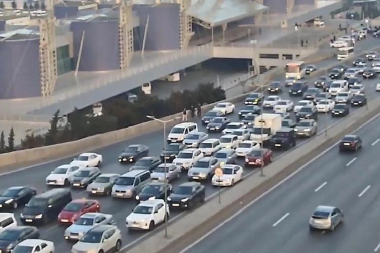 Bakının bir sıra yollarında nəqliyyatın sıxlığı yaranıb.