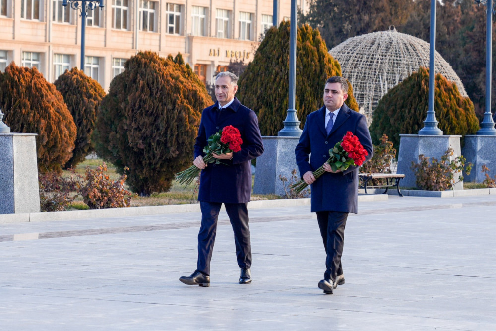Naxçıvan Muxtar Respublikasında Azərbaycan Respublikası Prezidentinin səlahiyyətli nümayəndəsi Ceyhun Cəlilov və rəqəmsal inkişaf və nəqliyyat naziri Rəşad Nəbiyev Ümummilli Lider Heydər Əliyevin Naxçıvan şəhərinin mərkəzi meydanında ucalan abidəsini ziyarət edib, önünə gül dəstələri düzüblər.
