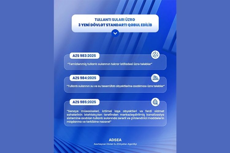 * AZS 984:2025– "Tullantı sularının su və su təsərrüfatı obyektlərinə axıdılması üzrə tələblər";
