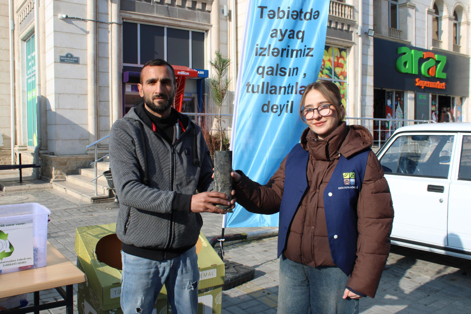 Naxçıvan Muxtar Respublikasının Ekologiya və Təbii Sərvətlər Nazirliyinin mətbuat xidmətindən NUHÇIXAN-a bildirilib ki, Naxçıvan şəhəri, Heydər Əliyev prospektində yerləşən “Araz” supermarketin qarşısında keçirilən aksiya zamanı vətəndaşlar ümumi tutumu 388 litr olan plastik, 149 litr olan şüşə tullantı, 92 ədəd işlənmiş batareya təhvil verərək əvəzində badam, tuya, alma, ərik və qızılçam tingləri əldə ediblər.