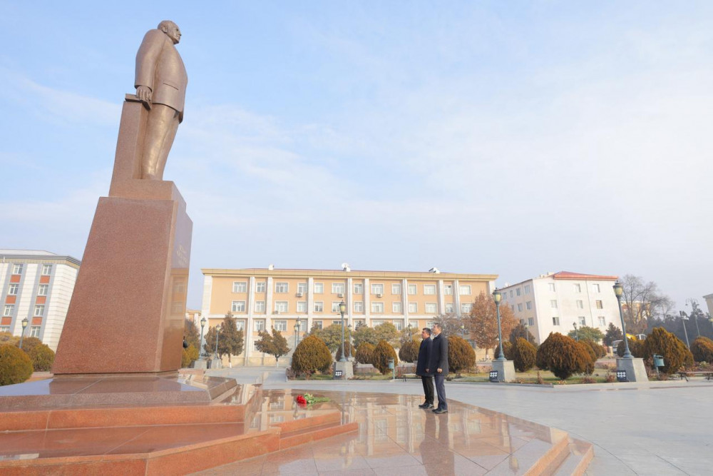 NUHÇIXAN xəbər verir ki, əvvəlcə Naxçıvan Muxtar Respublikasında Azərbaycan Respublikası Prezidentinin səlahiyyətli nümayəndəsi Ceyhun Cəlilov və Azərbaycan Respublikası Xüsusi Rabitə və İnformasiya Təhlükəsizliyi Dövlət Xidmətinin rəisi general-leytenat İlqar Musayev Ümummilli Lider Heydər Əliyevin Naxçıvan şəhərinin mərkəzindəki abidəsini ziyarət edib, dərin ehtiramlarını bildiriblər.