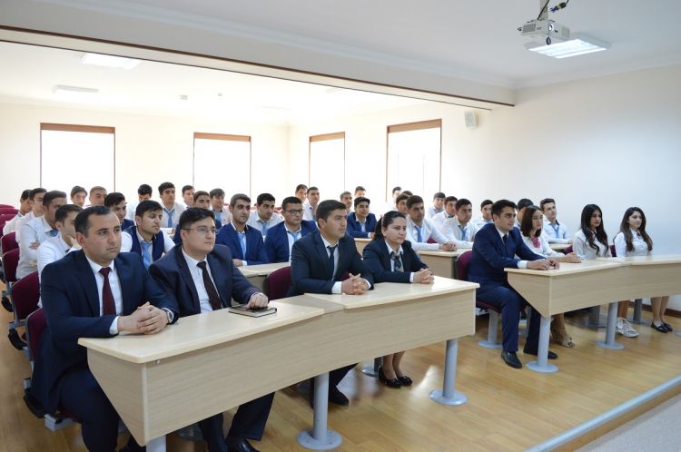 Sonra nazirliyin Büdcə şöbəsinin baş məsləhətçisi Ramil Hüseynov dövlət büdcəsinin tərtibi, təsdiqi, icrası, icrasına nəzarət haqqında tələbələrə geniş məlumat verib.