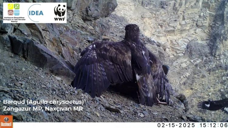 NUHÇIXAN xəbər verir ki, Ümumdünya Vəhşi Təbiət Fondunun (WWF) Azərbaycan nümayəndəliyinin rəsmi sosial hesablarında Akademik Həsən Əliyev adına Zəngəzur Milli Parkında məskunlaşan bərqud quşunun (lat. Aquila chrysaetos) görüntüsü paylaşılıb.