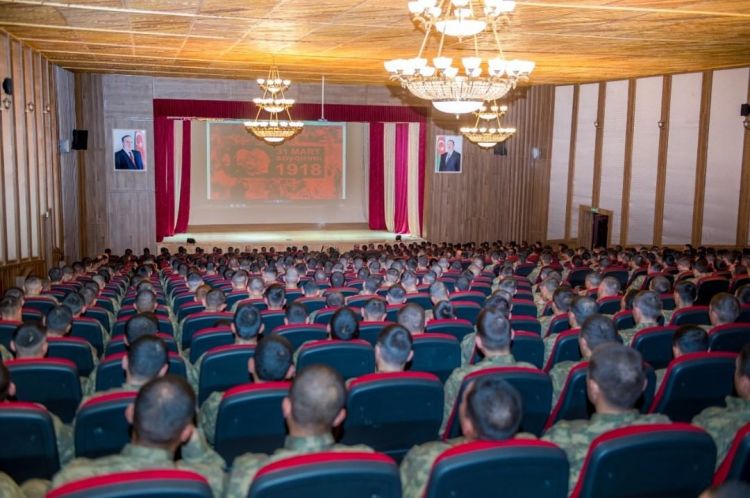 Naxçıvan Əlahiddə Ümumqoşun Ordunun Təlim-Tədris Mərkəzində şəxsi heyətin iştirakı ilə 31 mart- Azərbaycanlıların Soyqırımı Gününə həsr olunan “Qan yaddaşımız” adlı tədbir keçirilib. Əvvəlcə ölkəmizin suverenliyi, ərazi bütövlüyü, torpaqlarımızın azad olunması uğrunda canlarından keçən şəhidlərimizin xatirəsi bir dəqiqəlik sükutla yad edilib, Azərbaycan Respublikasının Dövlət Himni səsləndirilib.