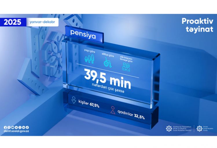 Ötən ilin yanvar-dekabr ayları ərzində 39 min 500 nəfərdən çox şəxsə proaktiv qaydada yaşa, əlilliyə və ailə başçısını itirməyə görə pensiya təyinatı aparılıb.