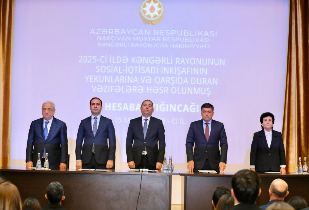 Rayon İcra Hakimiyyətinin başçısı Kamal Ələkbərov 2025-ci ilin təhlilini apararaq Kəngərli rayonunun ötən ili yüksək sosial-iqtisadi nəticələr və nailiyyətlərlə başa vurduğunu bildirib. Qeyd edib ki, rayonun iqtisadiyyatını, kənd təsərrüfatını gücləndirmək, tikinti, abadlıq və quruculuq işlərini davam etdirmək, yeni layihələrin icrasını təmin etmək, işsizliyi minimuma endirmək, yeni iş yerlərinin açılmasında, əhalinin məşğulluğunun təmin edilməsində təşəbbüsləri reallaşdırmaq əsas vəzifələr kimi diqqətdə saxlanılıb. Ötən il rayon büdcəsinin gəlirləri 3 milyon 693 min manat proqnoza qarşı 3 milyon 734 min 300 manat icra olunub. Proqnoz tapşırığa 101,1 faiz əməl edilməklə büdcəyə 41 min 300 manat əlavə vəsait daxil olub. 2025-ci il üçün dürüstləşdirilmiş büdcə xərcləri 2 milyon 969 min manat nəzərdə tutulub, hesabat dövründə həmin vəsaitin 2 milyon 203 min 62 manatı xərclənib, proqnoza 74,2 faiz əməl edilib.