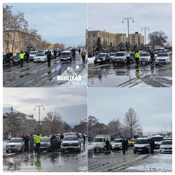 NUHÇIXAN xəbər verir ki, hüzn əlaməti olaraq dövlət bayraqları yarıyadək endirilib, sərnişinlərin, nəqliyyatın hərəkəti bir dəqiqəlik dayandırılıb.