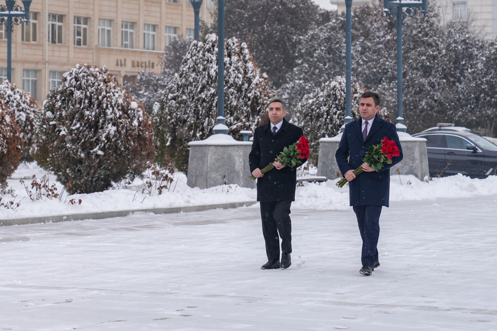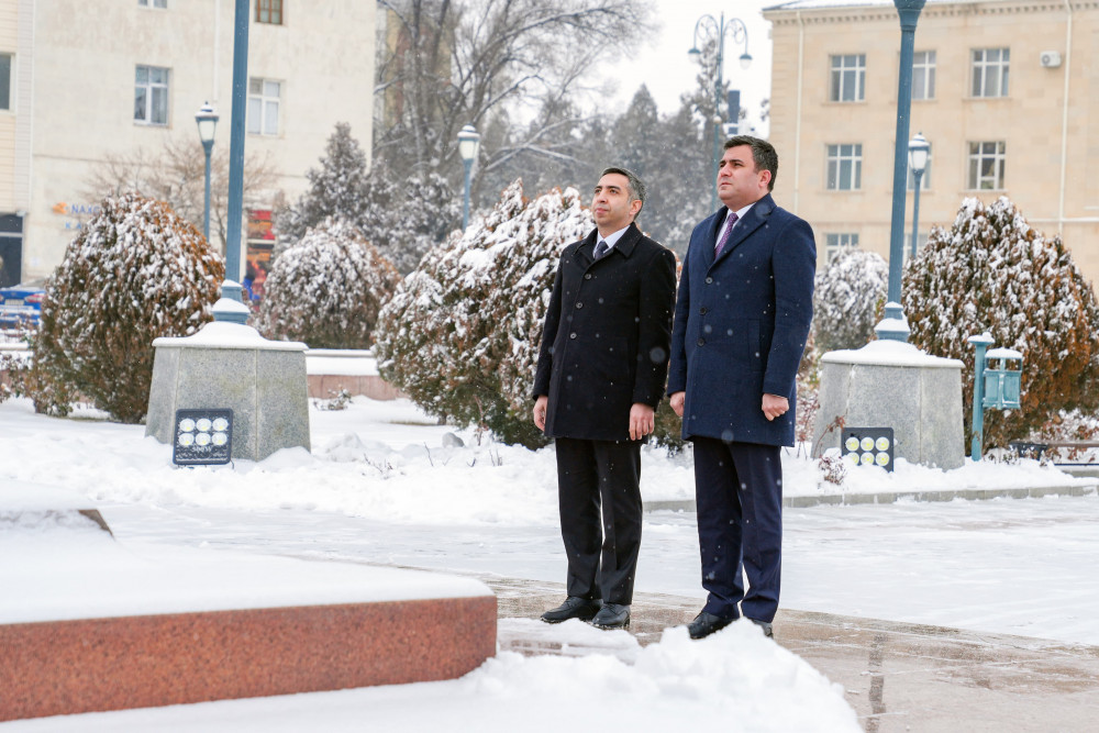 Naxçıvan Muxtar Respublikasında Azərbaycan Respublikası Prezidentinin səlahiyyətli nümayəndəsi Ceyhun Cəlilov və İcbari Tibbi Sığorta üzrə Dövlət Agentliyinin İdarə Heyətinin sədri Zaur Əliyev Ümummilli Lider Heydər Əliyevin Naxçıvan şəhərinin mərkəzi meydanında ucalan abidəsini ziyarət edib, abidənin önünə gül dəstələri düzüblər.