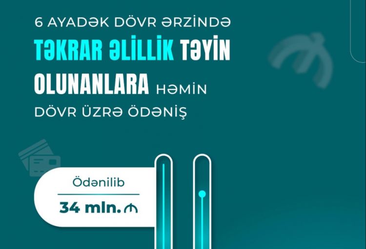 Onlara əvvəlki əlillik müddətinin bitdiyi vaxtdan təkrar əlillik təyin olunan vaxta qədərki dövr üzrə ümumilikdə 34 milyon manat vəsait ödənilib.