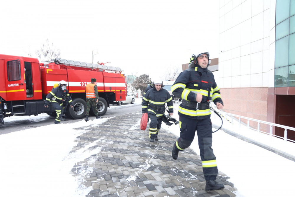 Fövqəladə Hallar Nazirliyinin Xüsusi Riskli Xilasetmə Xidmətinin, Naxçıvan şəhər Dövlət Yanğından Mühafizə Hissəsinin, Təcili Tibbi Yardım Xidmətinin və Naxçıvan Sağlamlıq Mərkəzinin müvafiq canlı qüvvə və texnikasının cəlb edildiyi təlimin keçirilməsində məqsəd tibb müəssisəsinin kollektivinə fövqəladə hallar, o cümlədən yanğınlar zamanı davranış qaydalarının aşılanması, şəxsi heyətin yanğın-xilasetmə əməliyyatları üzrə bilik və bacarıqlarının artırılması olub.