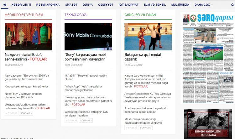 NUHÇIXAN xəbər verir ki, aprelin 2-dən etibarən saytda Naxçıvan Muxtar Respublikasının mərkəzi mətbuat orqanı olan “Şərq Qapısı” qəzetinin gündəlik PDF variantına birbaşa keçid üçün tətbiqetmə yaradılıb. İzləyicilər “Nuhçıxan” İnformasiya Agentliyinin internet saytına daxil olmaqla “Şərq Qapısı”nın PDF variantını da əldə edə biləcəklər.