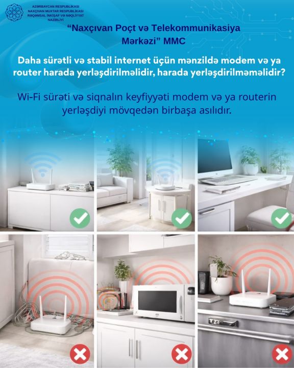 Naxçıvan Muxtar Respublikasının Rəqəmsal İnkişaf və Nəqliyyat Nazirliyinin tabeliyində olan “Naxçıvan Poçt və Telekommunikasiya Mərkəzi” Məhdud Məsuliyyətli Cəmiyyəti (MMC) muxtar respublika ərazisində əhaliyə təqdim olunan genişzolaqlı internet xidmətlərindən daha səmərəli və keyfiyyətli istifadəni təmin etmək məqsədilə bütün zəruri tədbirləri həyata keçirir. MMC abunəçilərinə göstərilən xidmətdən daha səmərəli faydalanmaları üçün aşağıdakı tövsiyələrə əməl etmələrini zəruri hesab edir: