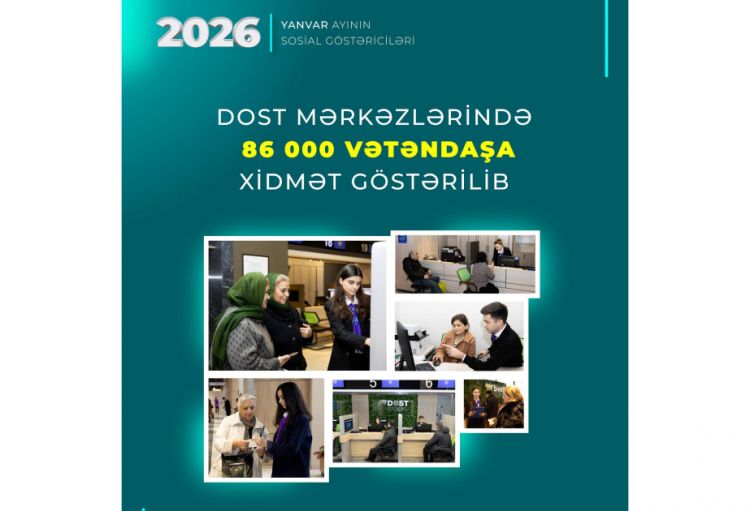 Bu ilin yanvar ayında DOST mərkəzlərində 86 min vətəndaşa xidmət göstərilib. Onların göstərilən DOST xidmətlərindən məmnunluq səviyyəsi 99,4 faiz olub.