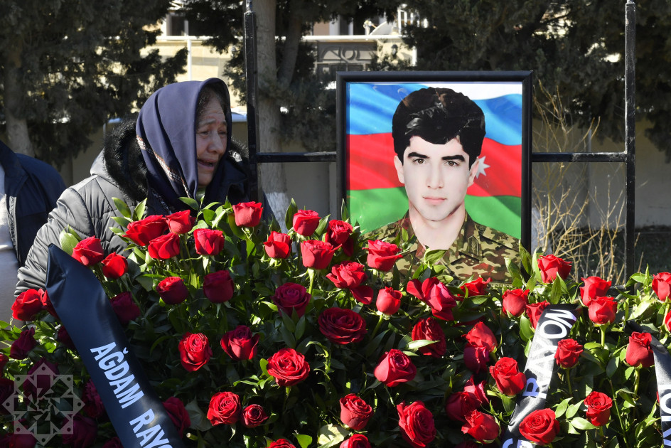 Daha sonra “Qurani-Kərim”dən ayələr oxunub, şəhidin ruhuna dualar edilib. Şəhidin məzarı üzərinə gül dəstələri düzülüb, ailəsinə başsağlığı verilib.