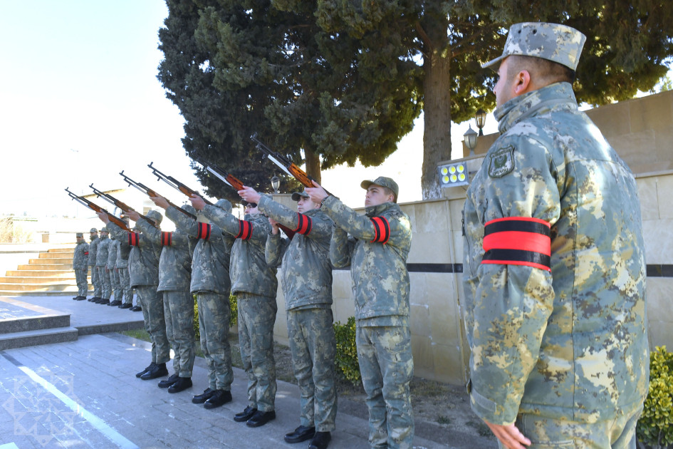 Hərbi şərəf və ehtiram nişanı olaraq, tabut məzara qoyulduqdan sonra fəxri qarovul tərəfindən havaya üç dəfə yaylım atəşi açılıb.