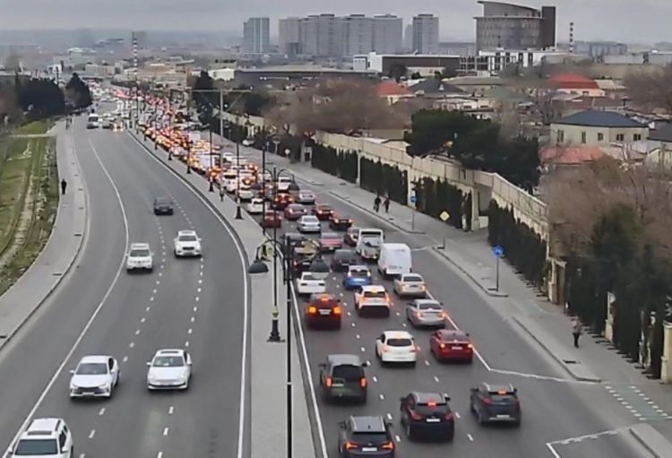 Bakının bəzi yollarında nəqliyyatın sıxlığı müşahidə olunur.
