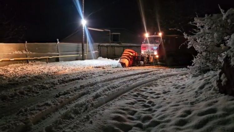 Agentliyin əməkdaşları kəndlərarası avtomobil yollarını qardan təmizləyir, buzlaşma ehtimalı olan ərazilərə qum-duz qarışığı səpir.