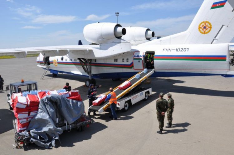 Fövqəladə hallar nazirinin müavini, tibb xidməti general-leytenantı Faiq Tağızadə jurnalistlərə bildirib ki, ümumi dəyəri 950 min manat olan humanitar yardıma 166 ədəd mətbəx dəsti, 3 min ədəd yataq dəsti, 75 ədəd çadır, 150 ədəd müxtəlif parametrli su nasosu, 5 ədəd 4 metrlik rezin qayıq, 140 ədəd işçi geyimi, 320 xilasedici geyim dəsti və 200 ədəd xilasedici jilet, "Katerpiller", "Komatsu" markalı iki ədəd ekskavator daxildir.