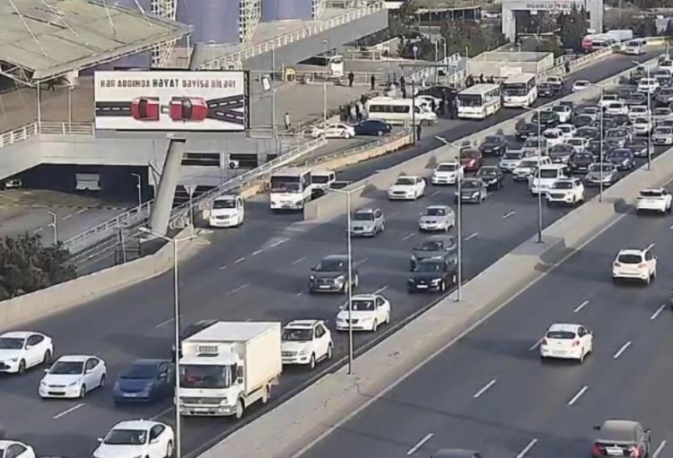 Bakının bəzi yollarında nəqliyyatın sıxlığı müşahidə olunur.