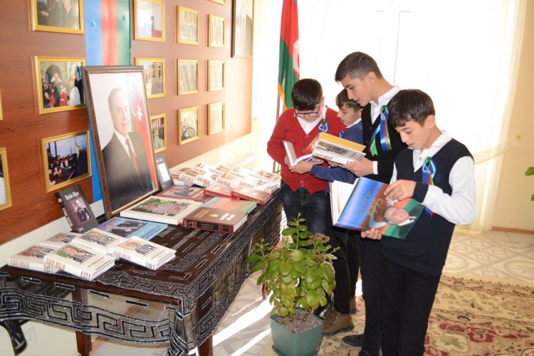 Çox yaxşı haldır ki, orta məktəb dərsliklərinin hamısında ulu öndər Heydər Əliyevin şəkli əks olunub. Məhz bu təsvir müəllimlərə imkan verir ki, xalqımızın böyük oğlu haqqında şagirdlərə məlumat versin, onlara Heydər Əliyevin həyat və fəaliyyətinin xalqımız üçün çox dəyərli, əhəmiyyətli olduğunu başa salsın. “Ümummilli lider Heydər Əliyev” portretinə şagirdlərin diqqətini çəkən müəllim dahi şəxsiyyətin tərcümeyi-halı, xalqımız və vətənimiz üçün gördüyü işlər barədə şagirdlərin yaş səviyyəsinə uyğun biliklər verməli, hələ bağçada və ailədə formalaşdırılmış təsəvvürlərinin genişləndirilməsinin qayğısına qalmalıdır.