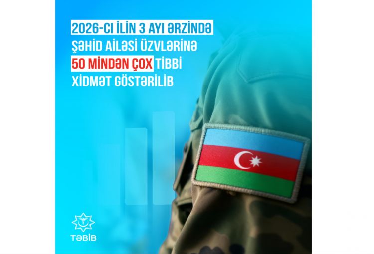 Cari ilin ilk üç ayı ərzində Tibbi Ərazi Bölmələrini İdarəetmə Birliyinin (TƏBİB) tabeli tibb müəssisələrinə 4261 şəhid ailəsi üzvü tərəfindən 14 min 645 müraciət daxil olub. Müraciətlər əsasında onlara ümumilikdə 51 min 183 adda müxtəlif tibbi xidmət göstərilib.