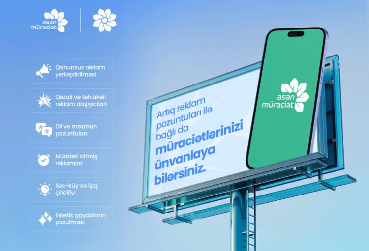 Bildirilib ki, yeni inteqrasiya nəticəsində artıq “ASAN müraciət” informasiya sistemi vasitəsilə açıq məkanlarda yerləşdirilən reklamlarla bağlı da müraciətlər ünvanlana biləcək. İstifadəçilər aşağıdakı istiqamətlər üzrə müraciətlərini rahatlıqla təqdim edə bilərlər: